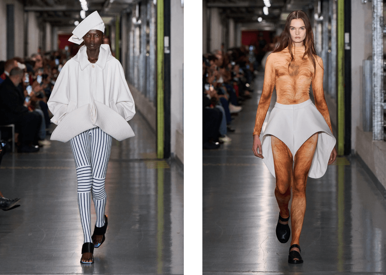 put it, “we enjoy things that make us mad the way a dog loves a chew toy.” Despite how annoying it may be, the impact of someone, like Demna, on youth culture, the industry, and the way people dress is undeniable — your fit, your ideas don’t have to be Balenciaga to have his name written all over them.And yet, as the world around us turned a lot more serious and sinister, the snarky nihilism that artists inevitably slip into when they optimize their work for discourse, started reading as not only cringe but offensive. The same week we fawned over Chanel’s reincarnation, we also spiraled about what the new Jean Paul Gaultier could have been. The poorly constructed takes on the iconic sailor hats and cone bras and a hairy nude male body printed on a head-to-toe bodysuit just felt like a shell of a statement that the audience was craving from a house that is so deeply embedded in queer and women’s history at a time when their rights and expression are under attack. It didn’t help that its new creative director Duran Lantink had bragged about refusing to learn how to make a pattern and enter the JPG archives.