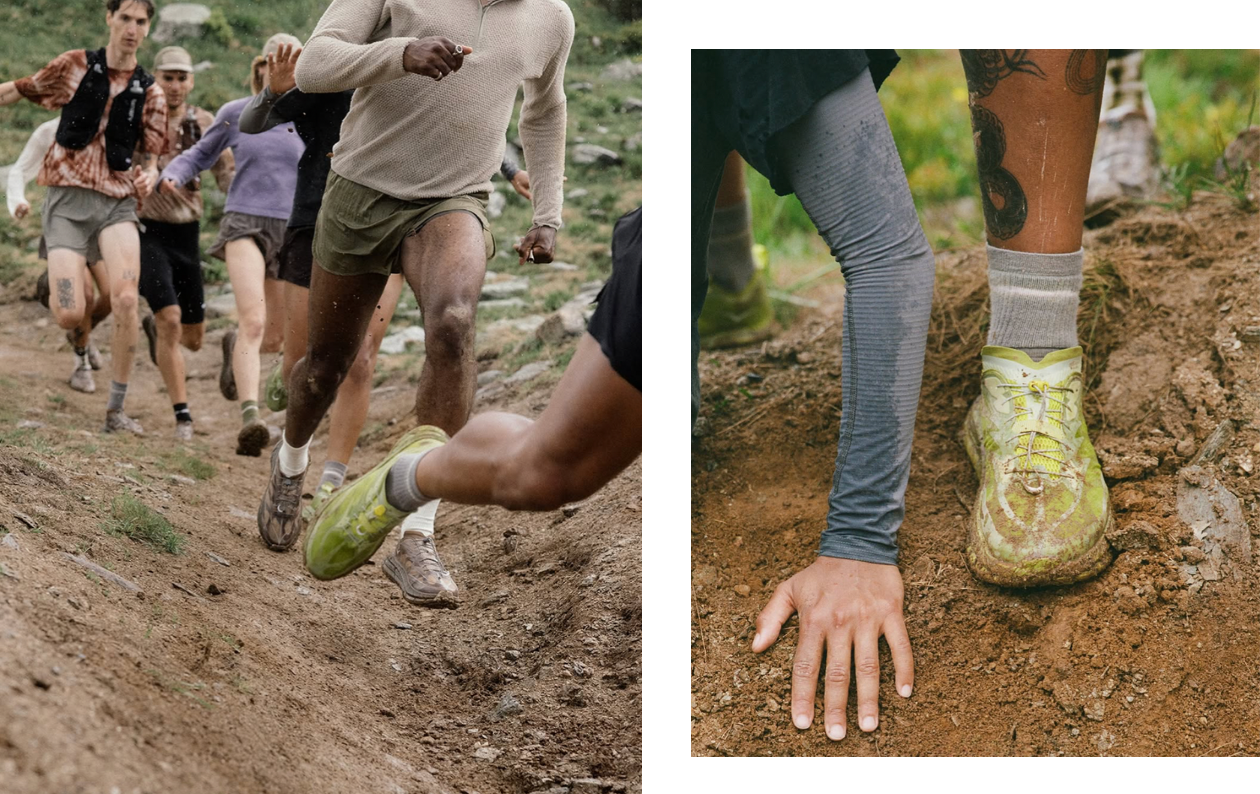 The men’s side of the wellness market offers a sneak peak into what the search for a middle ground between robotic self-optimization and raw human indulgence could look like. A sportswear brand Satisfy, for example, has spent the past decade building an equivalent of the old-school skateboarding subculture around extreme forms of running. Despite selling €120 tees and €240 shorts, the brand’s dusty, sweaty, bloody visuals make it feel both pleasantly textured and human in comparison to the dystopian longevity universe, and more accessible and humble than the moneyed athleisure world. Its in-house magazine Possessed discusses running in the context of psychedelics, fashion, and punk rock, and captures stories of its pro athletes who load up on donuts and pizza before running hundred-milers and frequently find themselves in the emergency room.