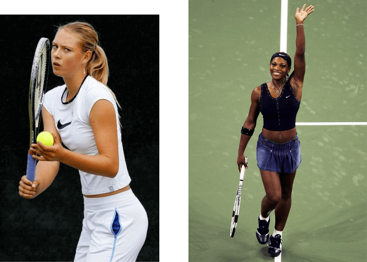 Ironically, flipping this approach and focusing on replicating the abstract elements of sports nostalgia images, like the stature of the athletes in the 80s and the 90s or the mischievous nature of street sports, may just be the secret to creating visuals and movements that feel both familiar and new. When you see pictures of Serena Williams and Maria Sharapova crashing their opponents in dangly earrings and a jean mini skort, the most interesting part isn’t the maker of the skort or the composition of the shot, it’s the clash of the casual, delicate objects, the powerful presence of the figures wearing them, and the intensity of the events. These photos are more than just memories from a particular tennis match — they are snapshots of the overall state of culture back then.